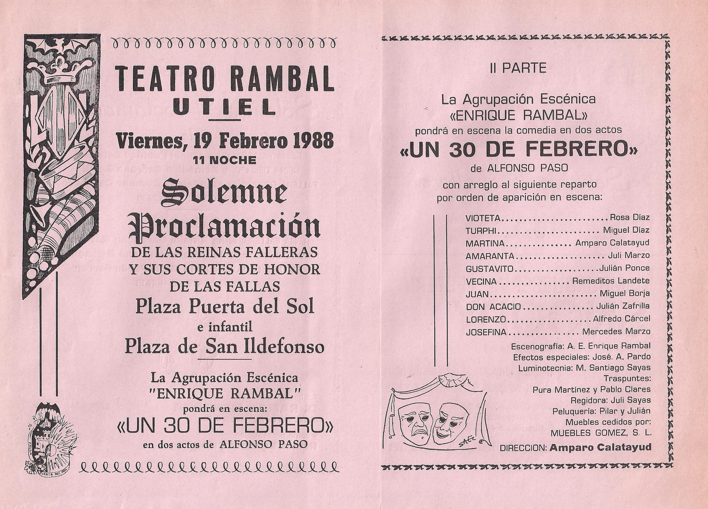 Representación realizada para la presentación de Reinas falleras y Corte de honor del año 1988 para la comisión de la falla Puerta del Sol de Utiel.